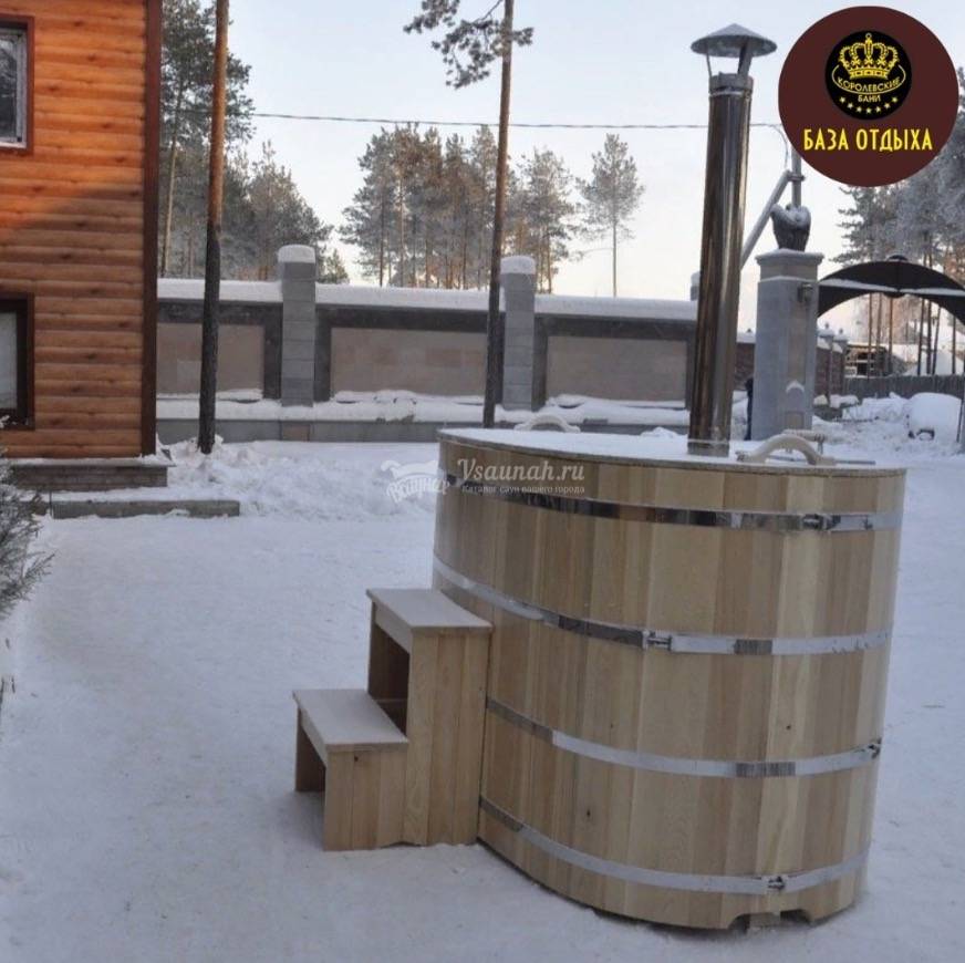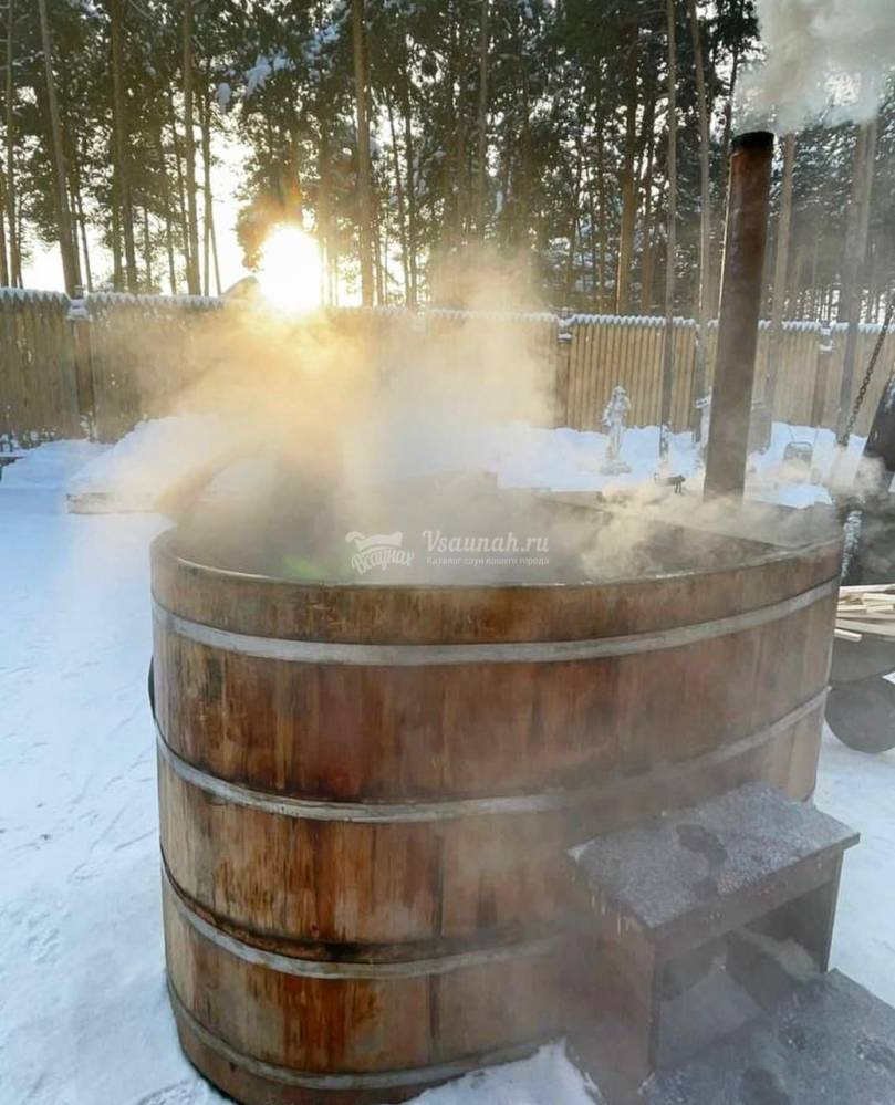 - На выбор: баня на дровах или кедровая купель или чан
