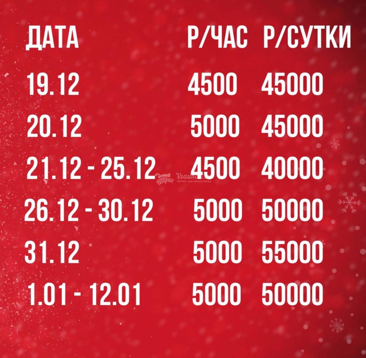 УСПЕЙ ОТМЕТИТЬ ПРАЗДНИКИ В КОРОЛЕВСКИХ БАНЯХ!
