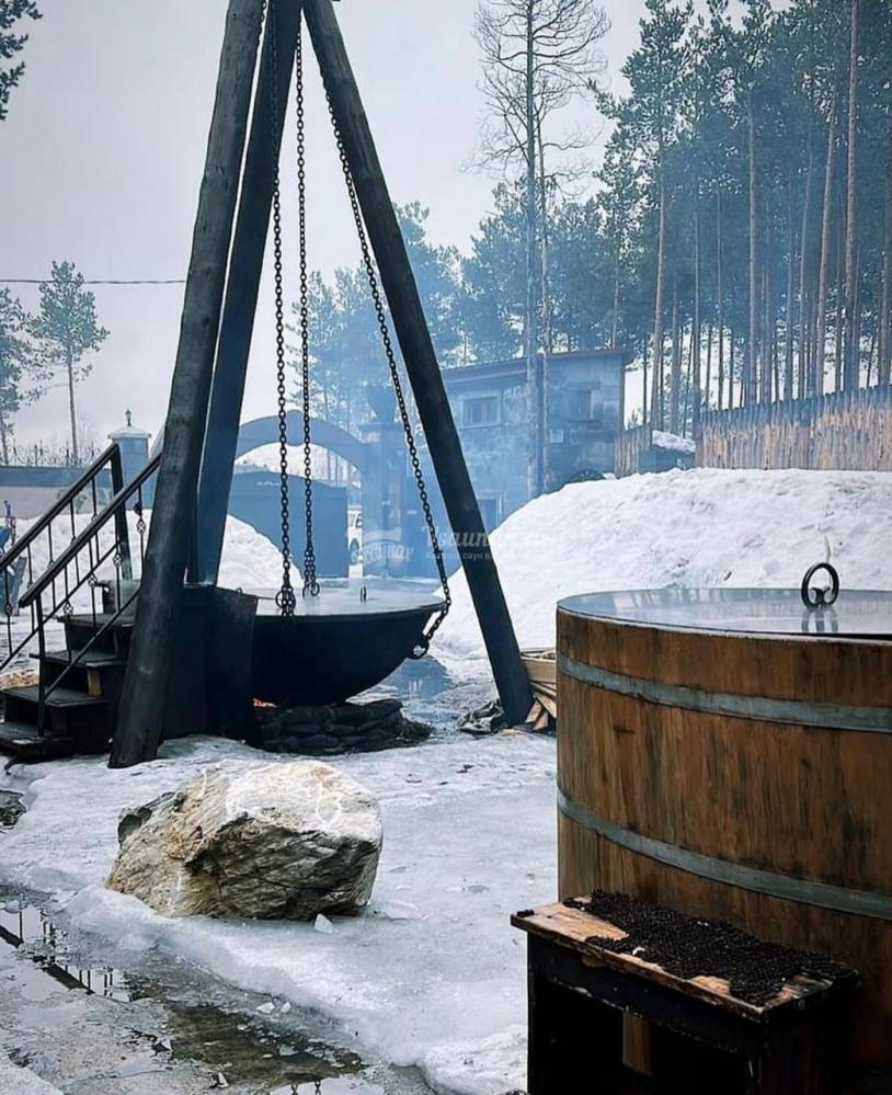 - Уличный чугунный чан (на 4 человека) Кедровая купель (на 4 человека)