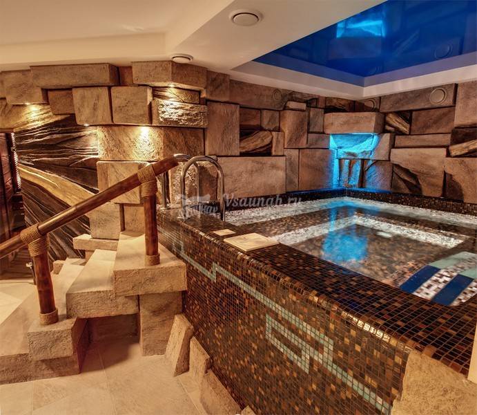 Интерьерное наполнение и дизайн сауны погружает гостей в неповторимую и загадочную атмосферу древнего мира: разбросанные повсюду блоки известняка, остатки красочного мозаичного искусства на стенах, бамбуковые занавески и массивные деревянные поручни, чернокожие изящные красавицы, изображённые на подсвеченных витражах, природные материалы и краски...