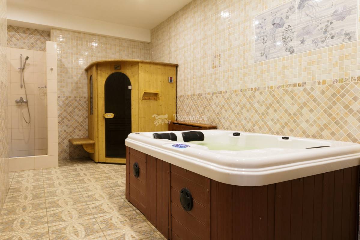 Приглашаем посетить нашу сауну, которая снабжена инфракрасной кабиной, гидромассажной ванной, комнатой отдыха с мебелью из натуральных сортов дерева, камином, мягкой мебелью, телевизором системой климат-контроля. Расcчитана на 6-8 чел., режим работы круглосуточный. Предусмотрено обслуживание из бара. Накроем стол ко дню рождения или другому любому торжеству.